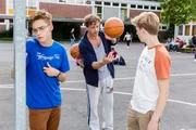 Liebe auf'n ersten Blick wird's ja schon mal nich'!Stefan hat mit dem G-Kurs einen Versuch mit einem riesigen Aufbau einer "Kettenreaktion" in der Turnhalle geplant. Als Michael (Gabriel Merz, l.) mit der blinden Annalena (Luise von Finckh) in die Turnhalle kommt, löst diese ungeplant die Kettenreaktion aus...Bild: © MG RTL D / Frank Dicks