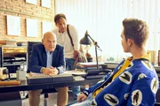 Das ist quasi eine Win-win-Situation...Stefan Vollmer (Hendrik Duryn, r.) begleitet Hannes (Marvin Linke, l.) zu Herrn Ramme (Simon Licht), doch der lässt sich auf keinen Deal ein.Bild: © RTL / Frank Dicks