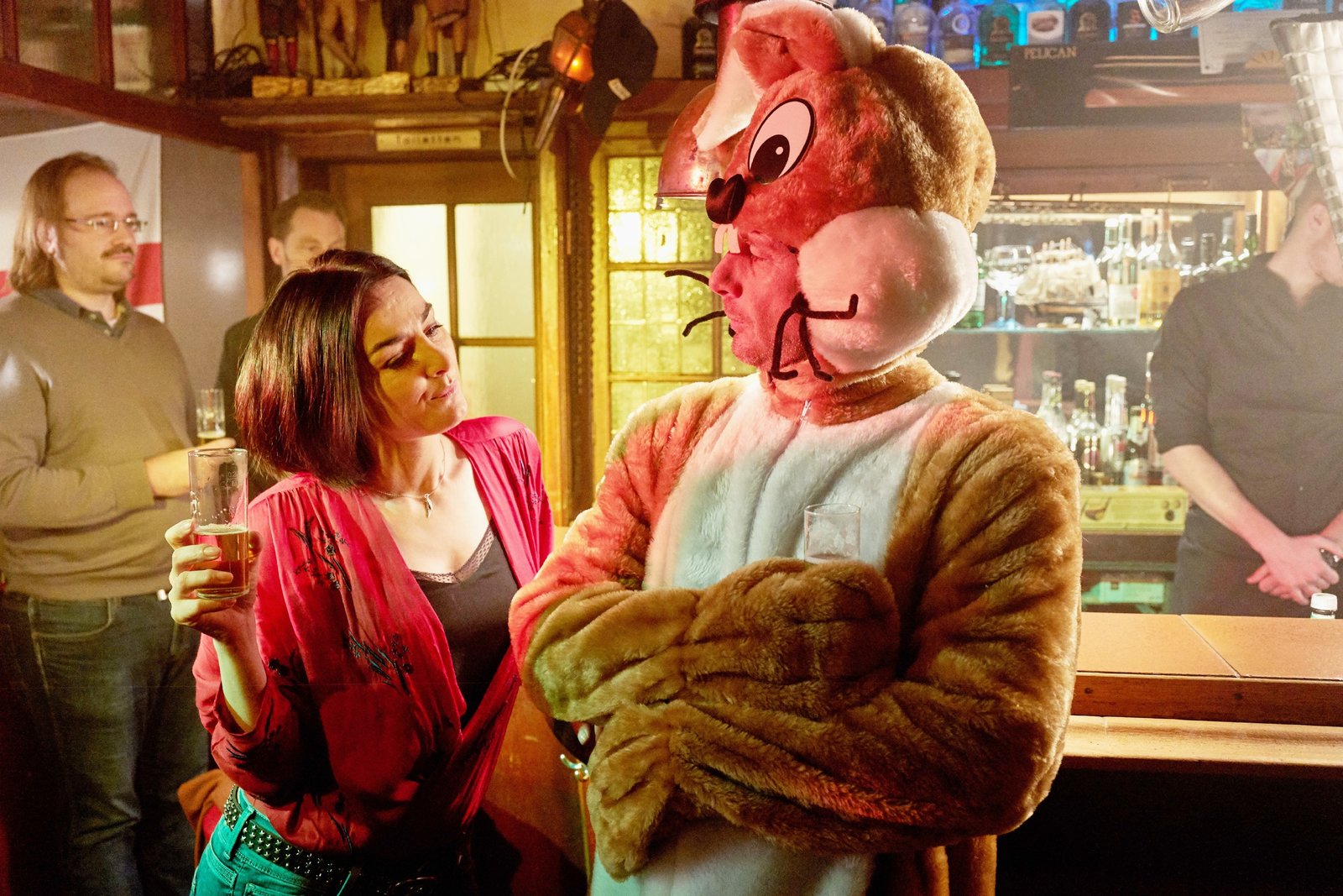 Vergessen Sie Ihre Hände nichtStefan (Hendrik Duryn) trifft in der Bar Nina (Marie Rönnebeck), die Mutter eines ehemaligen Schülers, wieder. +++Bild: © RTLup