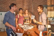 Wir woll'n euch knutschen sehen!Stefan (Hendrik Duryn, l.) gibt Günni (Samy Abdel Fattah, r.) in Gegenwart von Cem (Daniel Rodic) und Melanie (Mascha von Kreisler) das Demo-Tape wieder und muss ihm mitteilen, dass der Rapper MoTrip mit Günnis plumpen Texten nichts anfangen kann.Bild: © RTL / Frank Dicks