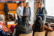 Verknallt? So'n Quatsch!Als Stefan (Hendrik Duryn, stehend l.) und Schülerin Anne (Henriette Nagel, r.) Flüchtlinge in der Schule unterrichten wollen, äußert Karin (Jessica Ginkel, M.) ihre Bedenken.Bild: © RTL / Frank Dicks / Sony P