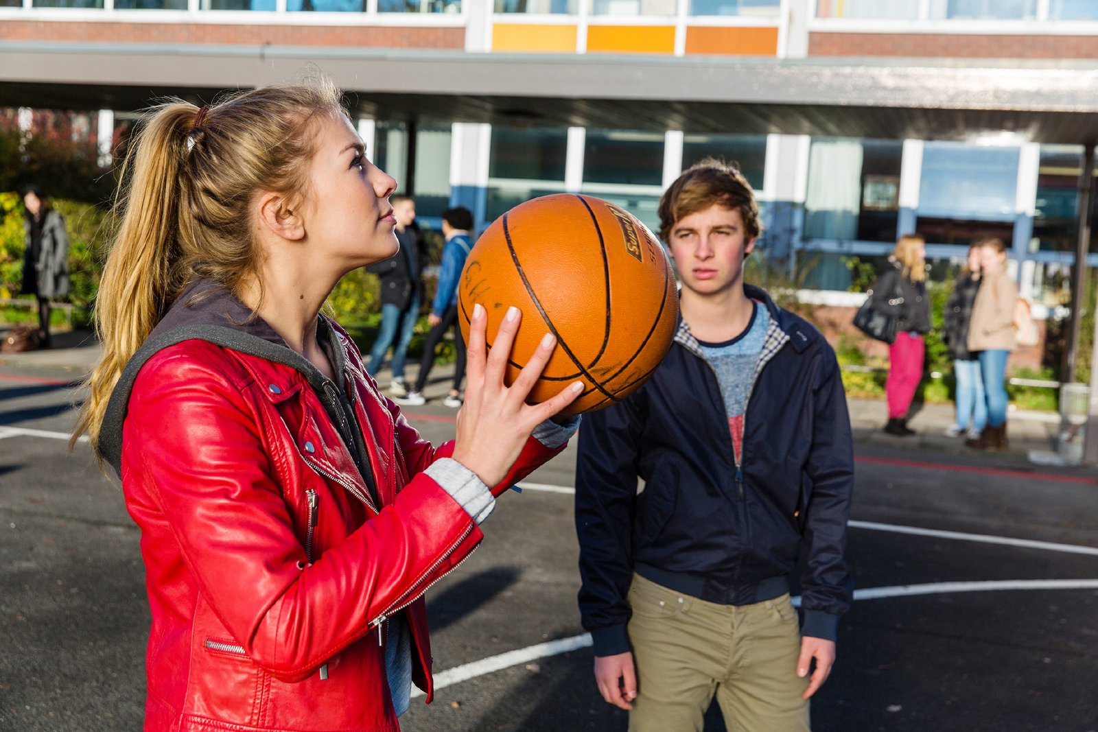 Like in a fucking French Movie ... so unverkrampftOle (Matti Schmidt-Schaller) und Emma (Zsa Zsa Inci Bürkle) spielen in der Pause Basketball. Ole findet Emma toll.Bild: © RTL / Frank Dicks / Sony P