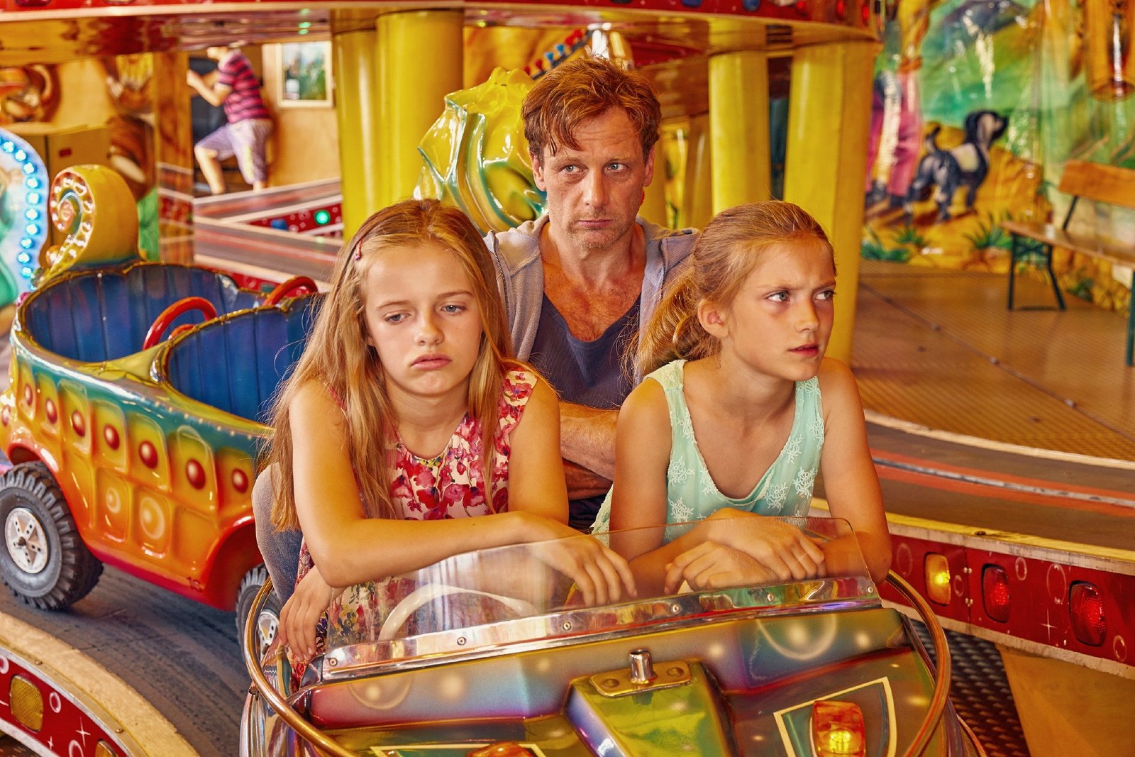 Paula mehr PopoStefan (Hendrik Duryn, M.) sitzt mit Lea (Ella Päffgen, l.) und Paula (Emily Lowin) und im Kinderkarussell.Bild: © RTL / Frank Dicks