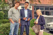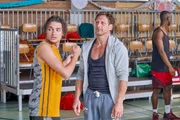 Du vermisst sie wirklich, oder?Dass das frisch verliebte Basketball-Talent Marc (Nick Romeo Reimann, l.) kaum noch den Korb trifft, findet Stefan Vollmer (Hendrik Duryn, M.) halb so wild. Dank Günni (Samy Abdel Fattah) gewinnt die GSG ja doch noch.Bild: © RTL / Frank Dicks