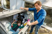 Du willst in mein Leben? Das ist mein Leben!Der verhaltensauffällige Tom (Jascha Rust, l.) flüchtet vor seinen Mitschülern und rettete sich mit einem Sprung durchs Fenster in eine Mülltonne, wo ihn Stefan Vollmer (Hendrik Duryn) findet.Bild: © RTL / Frank Dicks