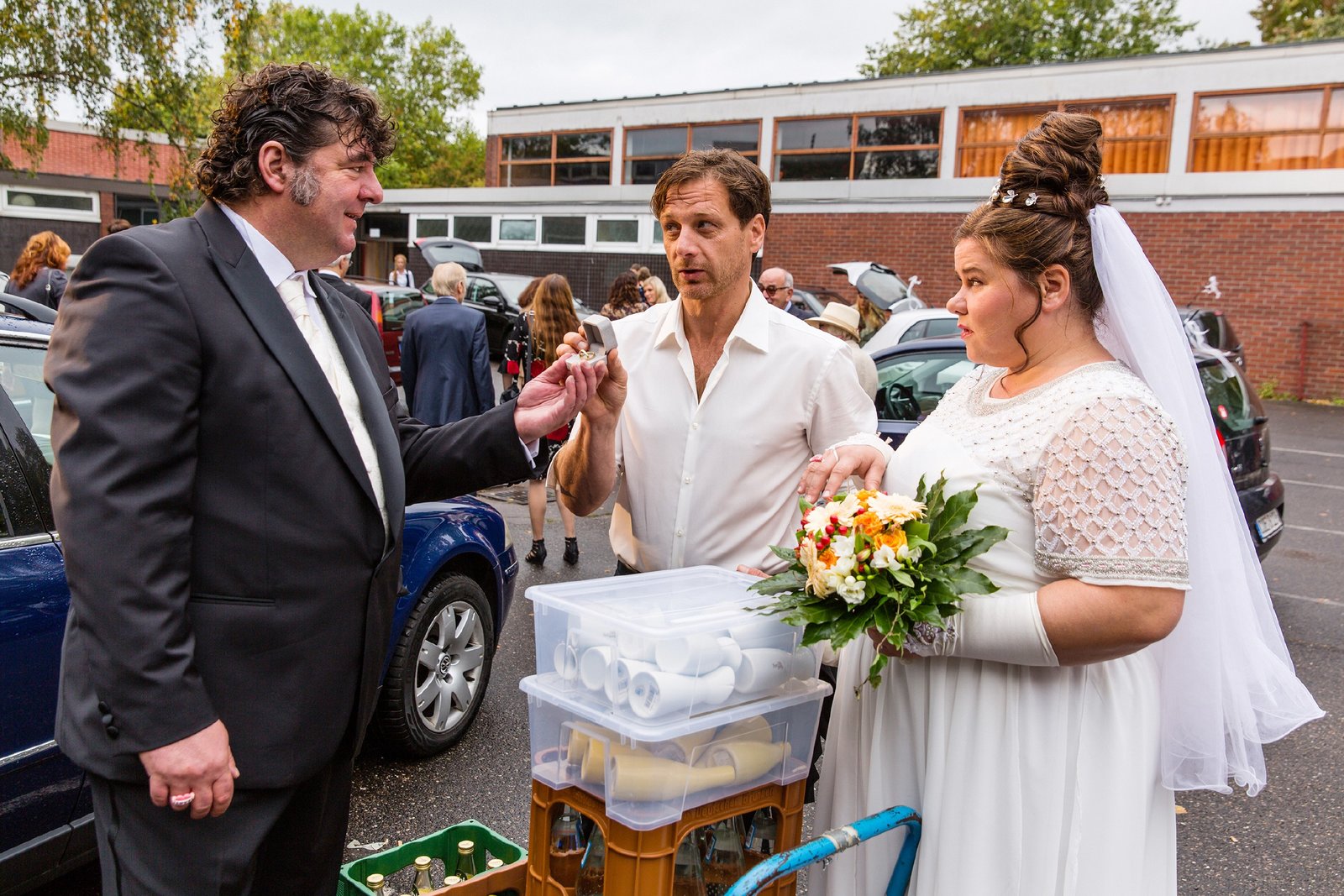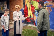 Mit wie viel L schreibt man Bullshit?David (Simon Böer, r.) und sein Sohn Julius (Milon Böer) werden von Melanie (Claudia Hiersche) an dem Graffiti an der Schulwand erwischt. +++Bild: © TVNOW / Frank Dicks