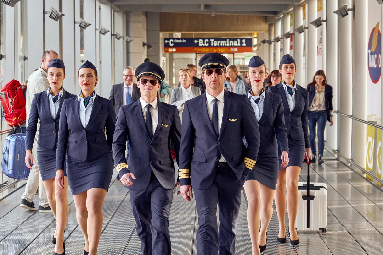 Das ist quasi eine Win-win-Situation...Stefan Vollmer (Hendrik Duryn, r.) und Hannes (Marvin Linke, l.) im Pilotenoutfit.Bild: © RTL / Frank Dicks