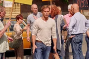 Irgendwie war's besser, als er noch nicht geredet hat...Stefan Vollmer (Hendrik Duryn, M.) trifft auf die wütende Menge, die gegen den verurteilten Triebtäter demonstriert, der in die Nähe der Schule gezogen ist.Bild: © RTL / Frank Dicks
