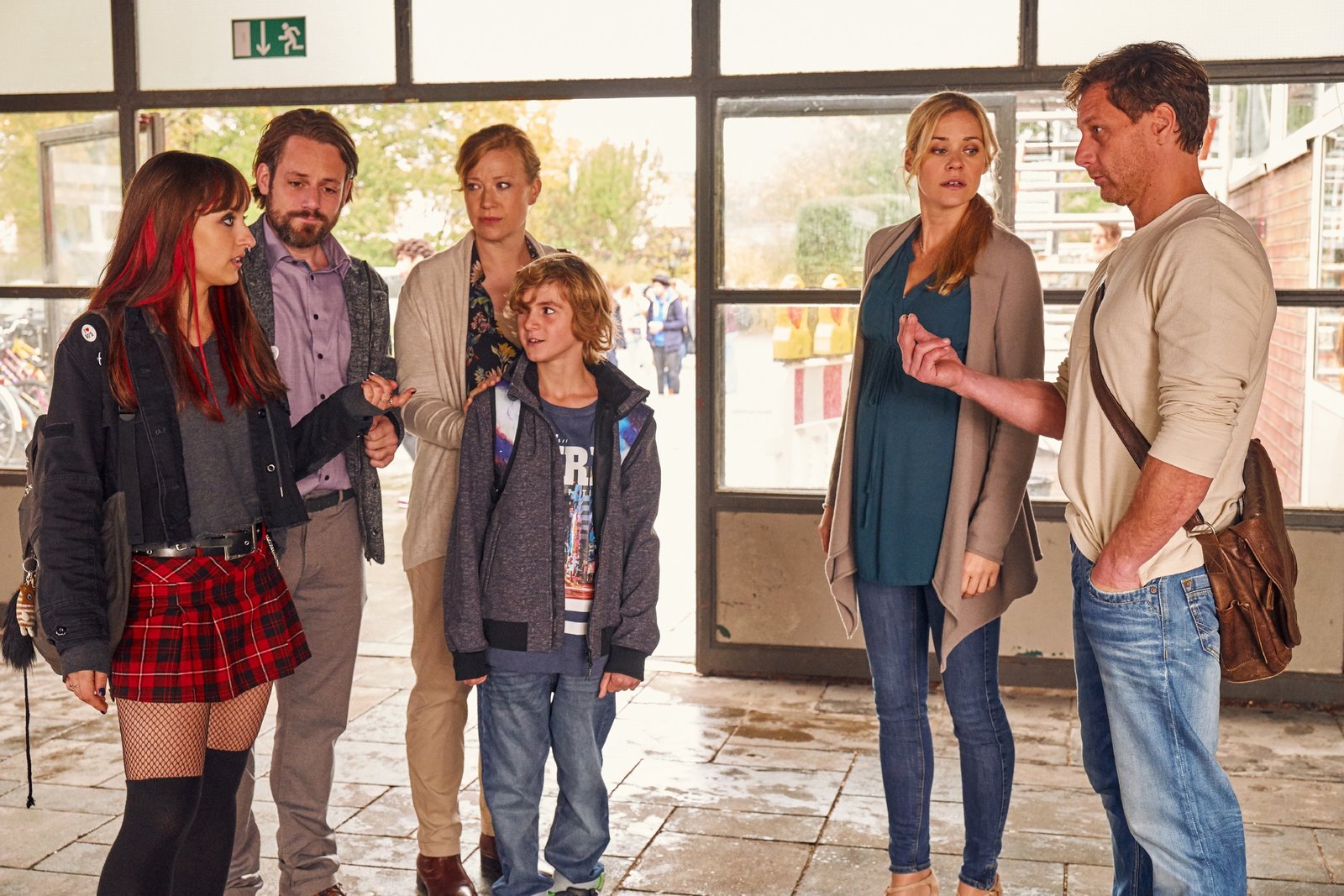 Ich bin vor allem besser im Gehen als im Bleiben!Stefan Vollmer (Hendrik Duryn, r.) und Karin Noske (Jessica Ginkel, 2.v.r.) treffen auf Familie Neugebauer: Sylvia (Franziska Arndt), Joachim (Matthias Brüggenolte, 2.v.l.) und Sohn Bernie (Mats Nohl) begleiten Franzi (Irina Kurbanova, l.), die zurückgestuft werden soll.Bild: © RTL / Frank Dicks