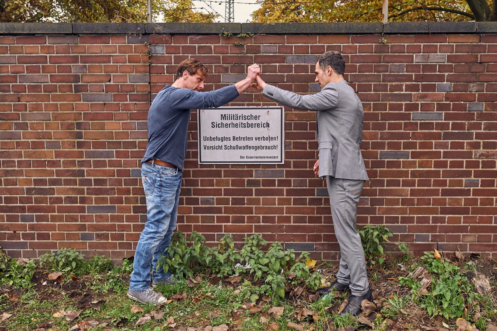 40.000 Gründe, die Eier in die Hand zu nehmen, anstatt sie zu schaukeln!Stefan Vollmer (Hendrik Duryn, r.) und Michael (Gabriel Merz) wollen Ole vor einer Dummheit bewahren - und klettern über die Kasernenmauer...Bild: © RTL / Frank Dicks
