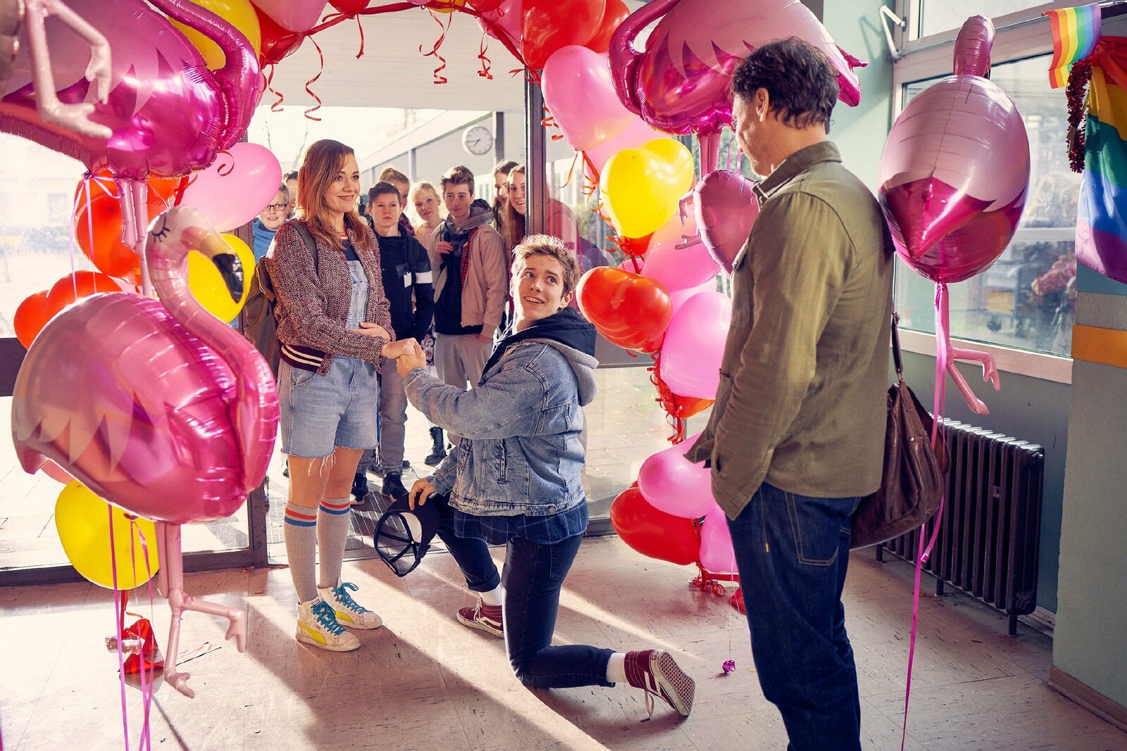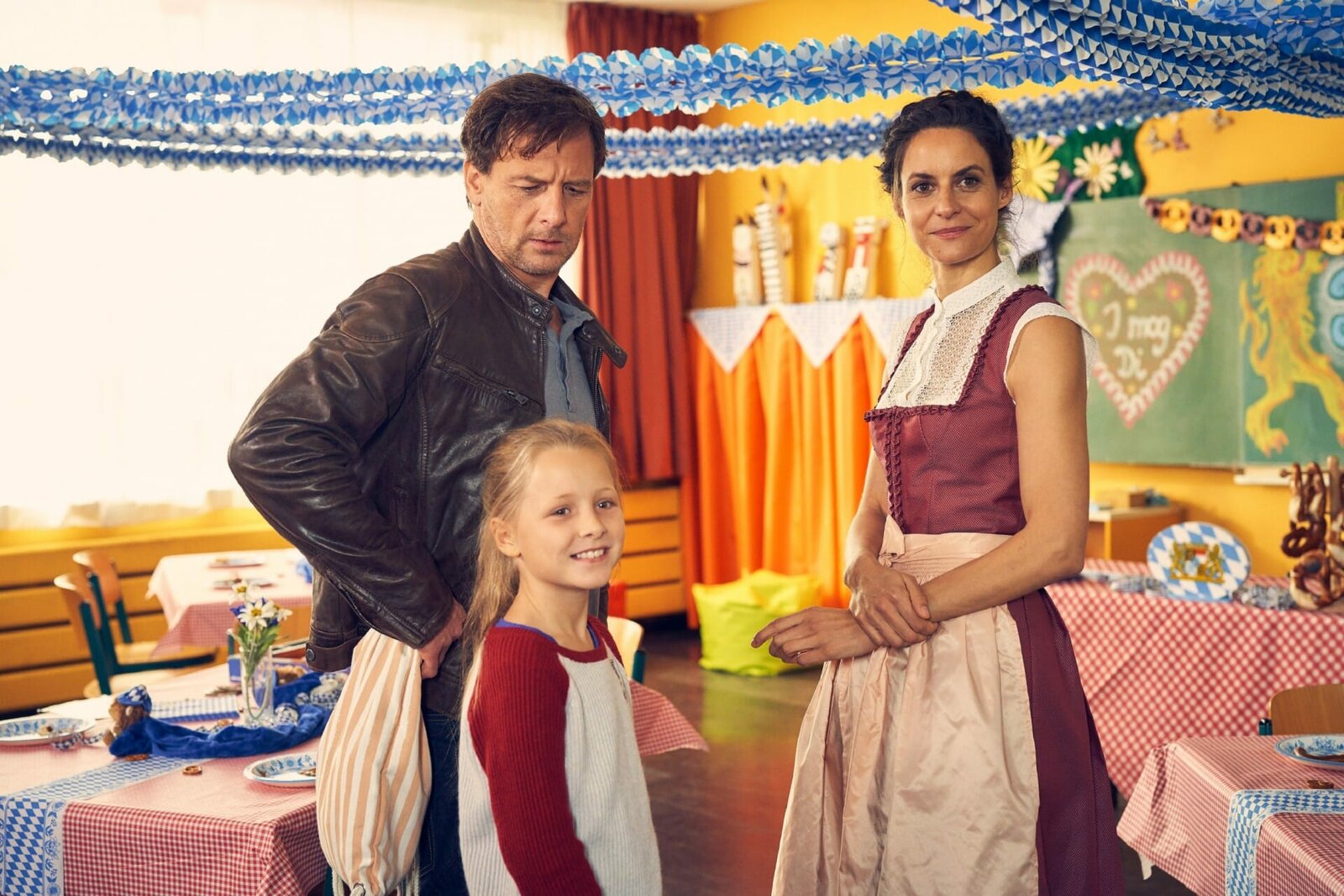 Hast du mich grad' Nazi genannt?!Stefan (Hendrik Duryn) holt die kleine Frida (Leni Säugling) aus der Schule ab. Die findet die Kulturwoche und ihre Lehrerin Rebecca (Liane Forestieri, r.), die sich extra mit Dirndl gekleidet hat, ziemlich cool. +++Bild: © RTL / Frank Dicks