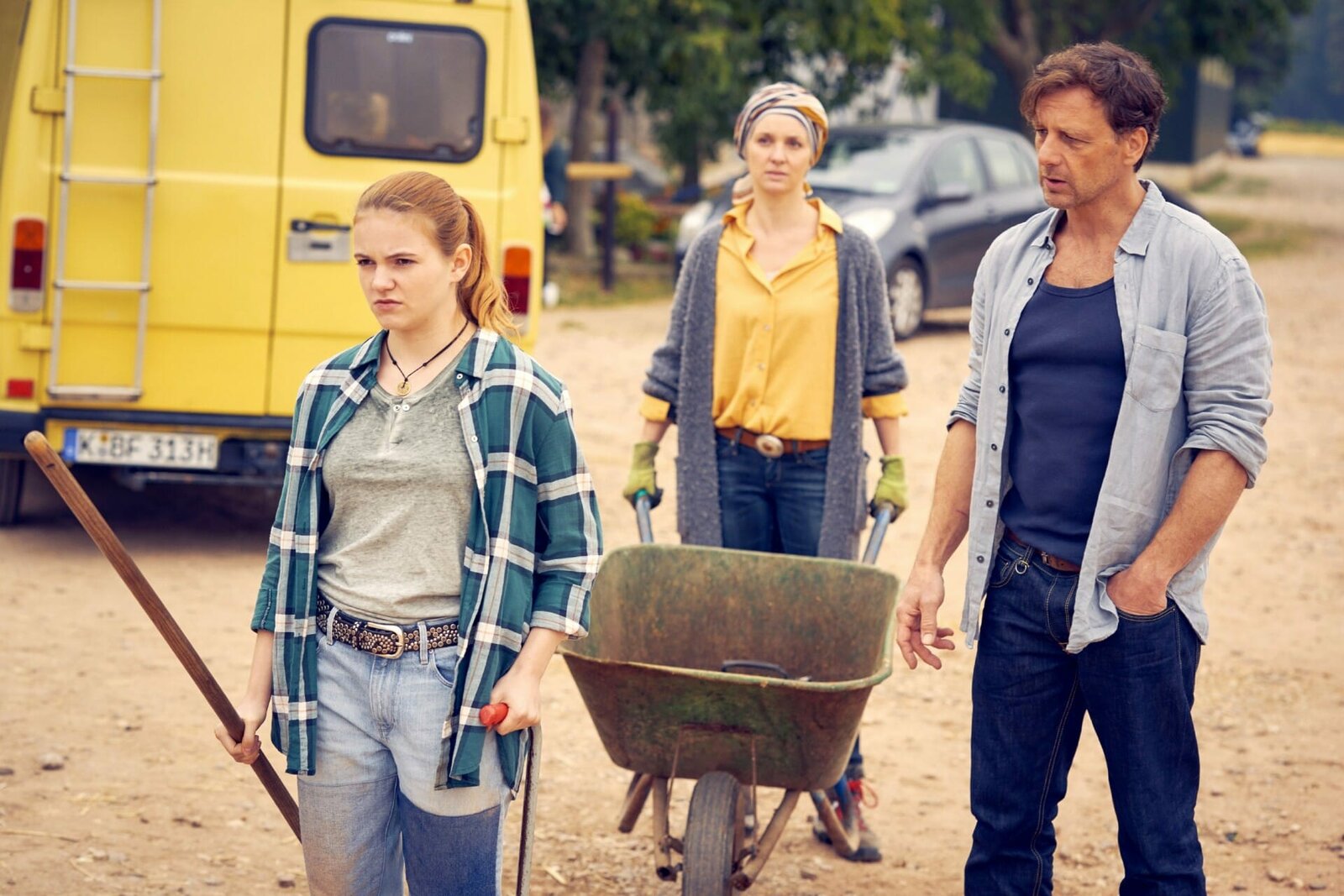 ... so'ne kleine Vollmerette!Stefan (Hendrik Duryn) will noch einmal mit Maya (Luzie Juckenburg) reden. Die beiden werden von Mayas Mutter (Eva Marianne Kraiss, Mi.) unterbrochen. +++Bild: © TVNOW / Frank Dicks