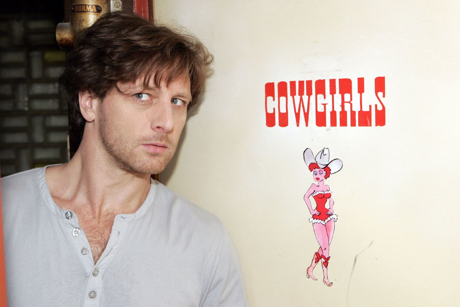 LeonStefan (Hendrik Duryn) sucht seinen angetrunkenen Kollegen Elmar auf der Damen-Toilette. Er ist da - und nicht allein...Bild: © RTL / Frank Dicks