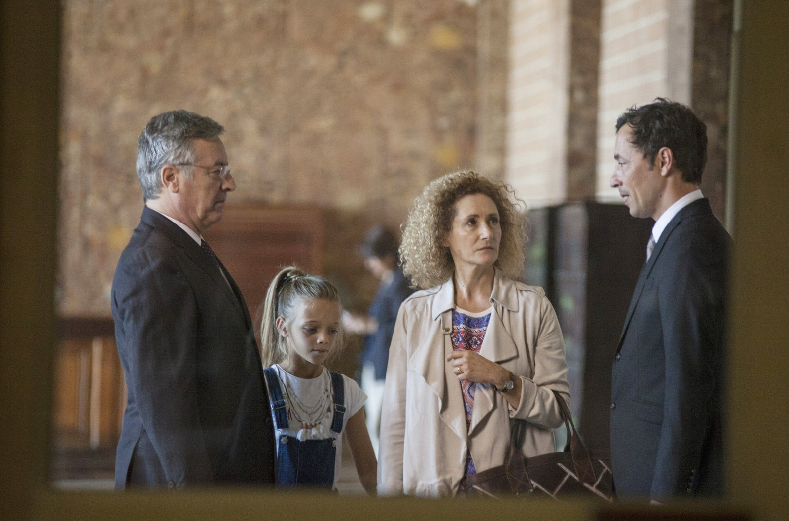 Der Tote in der BrandungDie Familie der Angeklagten – Vater Joaquim (Guilherme Filipe, li.), Mutter Isabel Cordeiro (Luísa Cruz) und Tochter Catarina (Carminho Coelho) – geraten in Gefahr.Bild: © ARD Degeto/Armando Claro