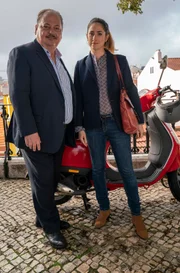 Die verlorene TochterRechtsanwalt Eduardo Silva (Jürgen Tarrach) freut sich, seine Tochter Ines (Helen Woigk) wiederzusehen.Bild: © ARD Degeto/Armanda Claro