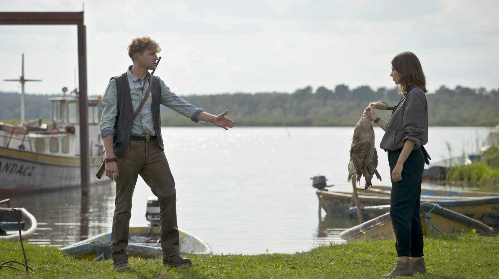 FangschussViktoria Wex (Claudia Eisinger) stellt den Wilderer Robin (Klaudiusz Kaufmann) zur Rede.Bild: © ARD Degeto/Wiktor Krzystztof