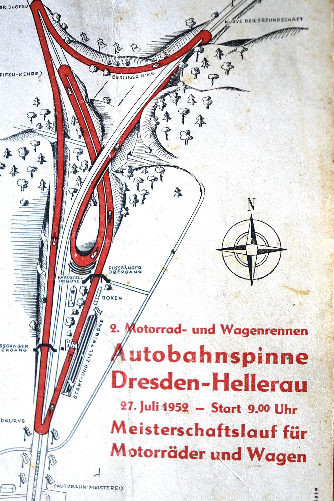 Die Dresdner Autobahnspinne - Singende Säge, jubelnde Massen und Meisterfahrer Ewald KlugeHistorisches Plakat Rennankündigung_1952Bild: © Repro: MDR/René Römer