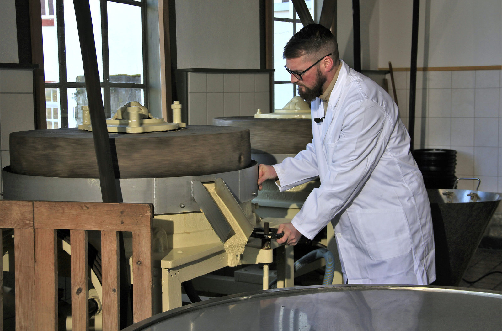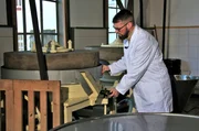 Die Kunstmühle Kleinhettstedt - ... die ihren Senf dazugebenUlf Morgenroth, der Senfmüller beim Mahlen mit der Senfmaische.Bild: © MDR/Kathrin Welzel