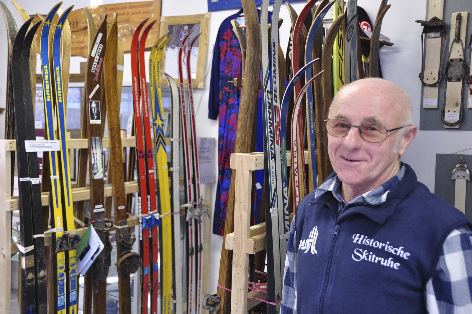 Skier, Stolz und Spitzensport - Die Überflieger aus dem VogtlandGottfried Fuchs sammelt Skier aller Art. Seit einem Jahr leitet er das Museum SkitruheBild: © MDR/Linda Süß
