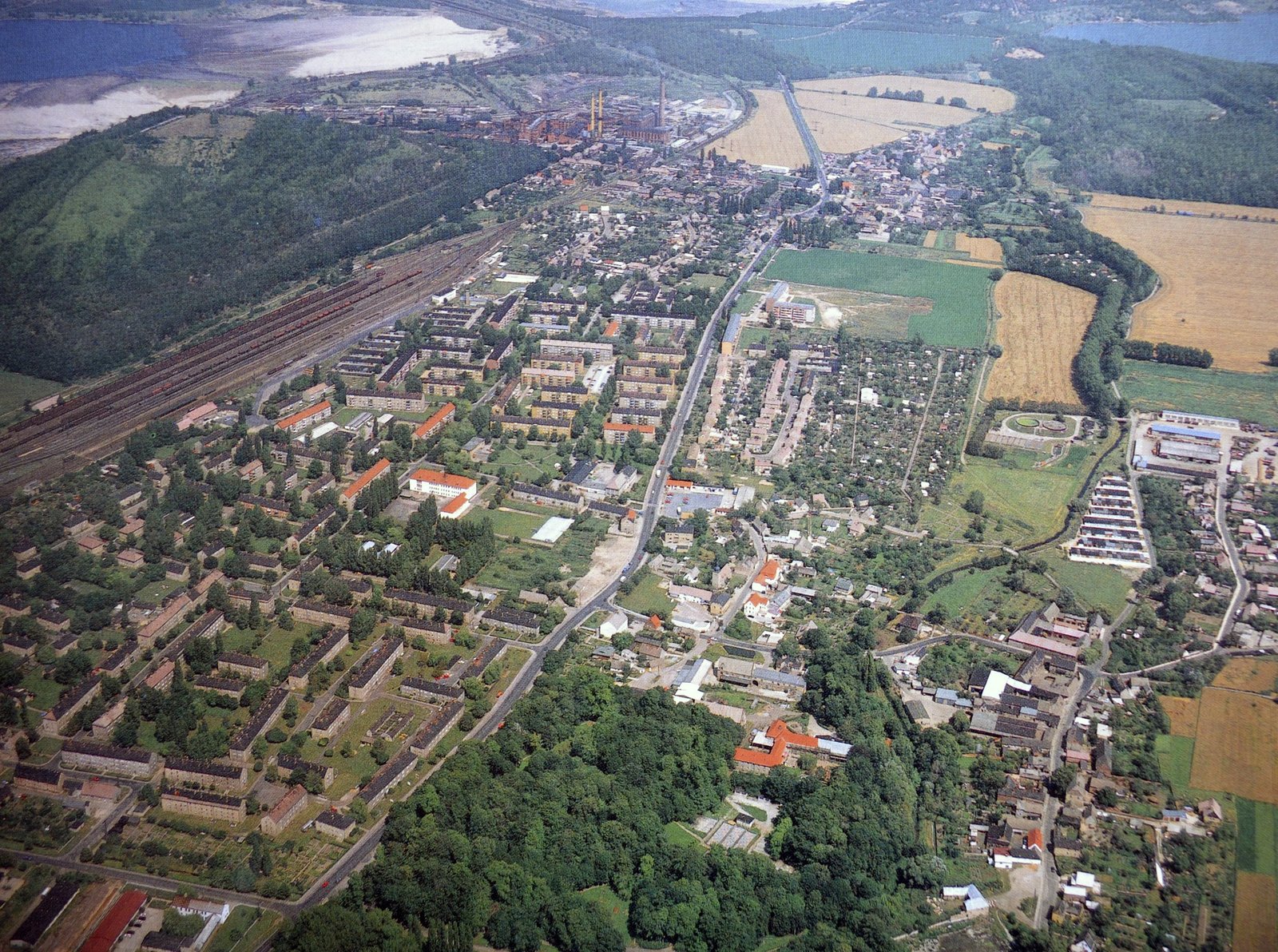 Kohle, Kumpel, Kapitäne - Das Geiseltal im WandelBraunsbedra mit seiner Brikettfabrik lag direkt am Rand des Tagebaus. In den großen Neubausiedlungen fanden viele eine neue Wohnung, deren Heimatdorf dem Tagebau weichen musste.Bild: © MDR/TV Omega/Holger Schmidt