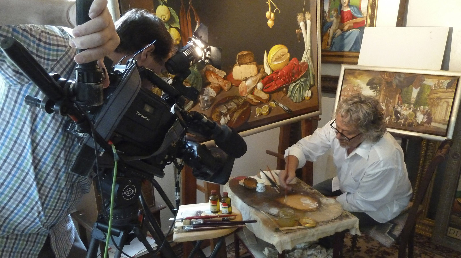 Bauernkriegspanorama Bad Frankenhausen - Das Jahrhundertwerk des Werner TübkeDer Maler Eberhard Lenk kam Tübkes Malstil am nächsten. So wurde er sein wichtigster Helfer. Fast zwei Jahre lang malte er mit ihm in Bad Frankenhausen an der riesigen Leinwand.Bild: © MDR/Daniel Baumbach