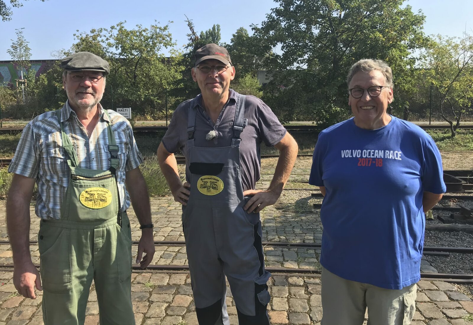 Leipzigs Traum vom Meer - Der große KanalUwe Köhler (Mitte) von der Museumsfeldbahn am Lindenauer Hafen ist Karl-Heine-Experte und weiß alles über den Kanalbau. Denn: Die Museumsfeldbahn geht direkt auf den Bau des Kanals zurück.Bild: © MDR/Dirk Schneider / MDR/HA Kommunikation