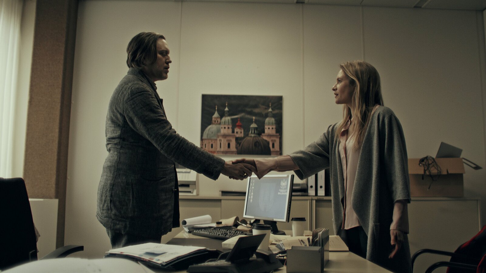 FinsternisL-R: Gedeon Winter (Nicholas Ofczarek) and Ellie Stocker (Julia Jentsch)Bild: © Sky Atlantic