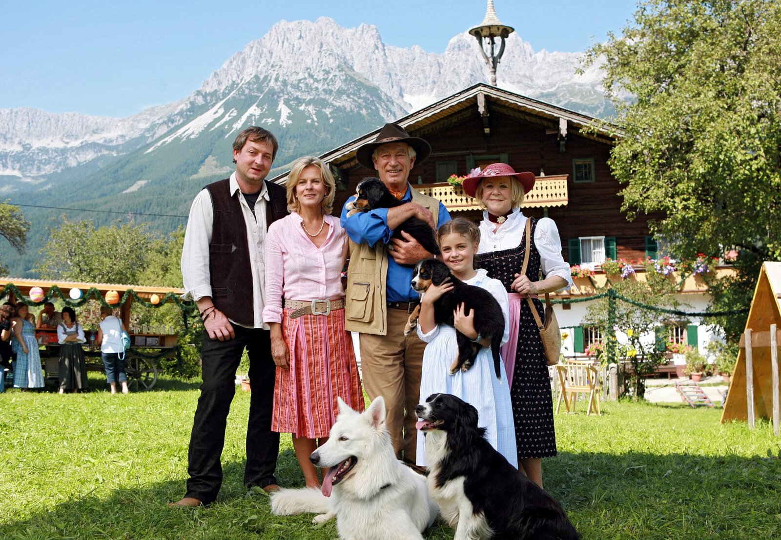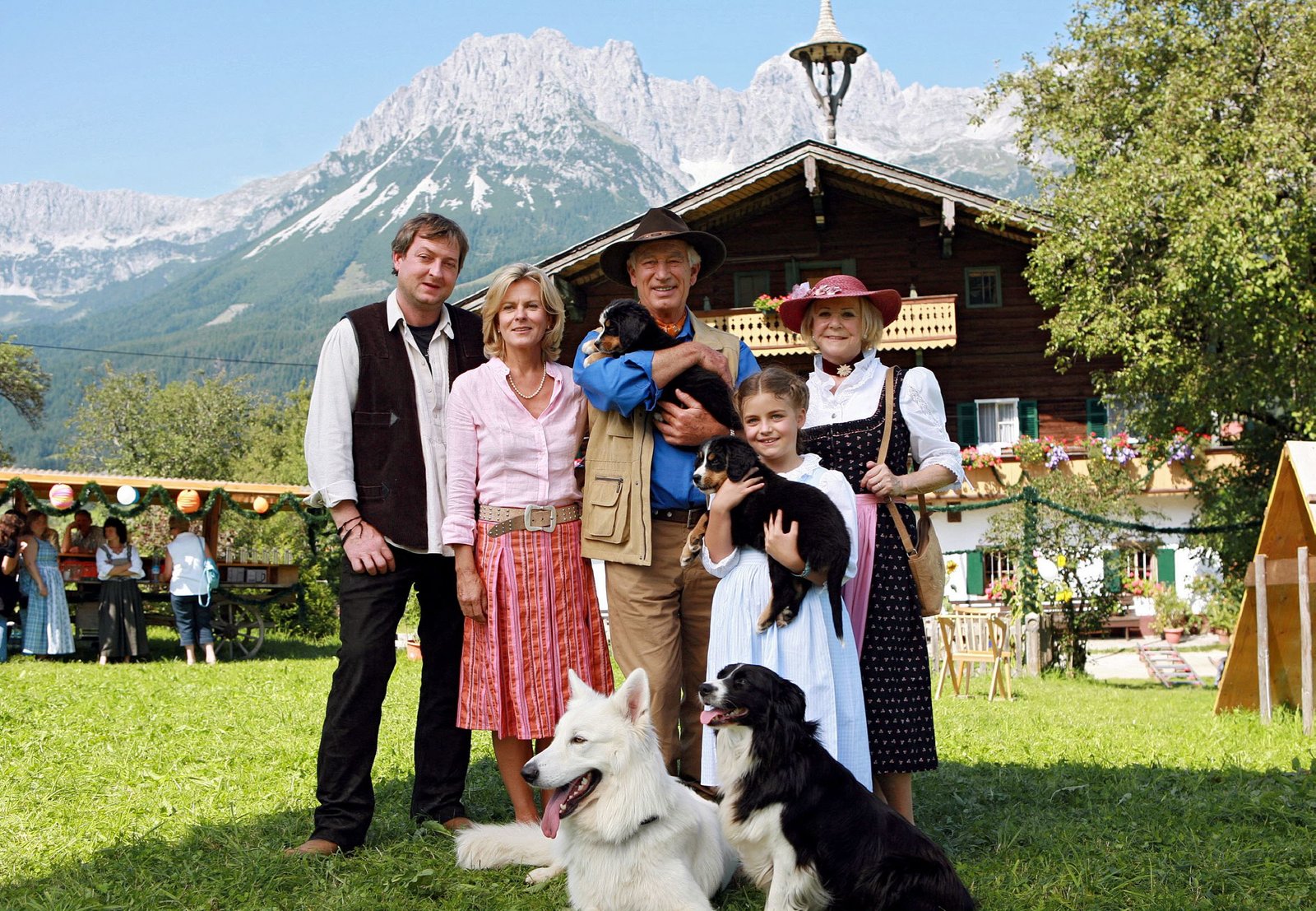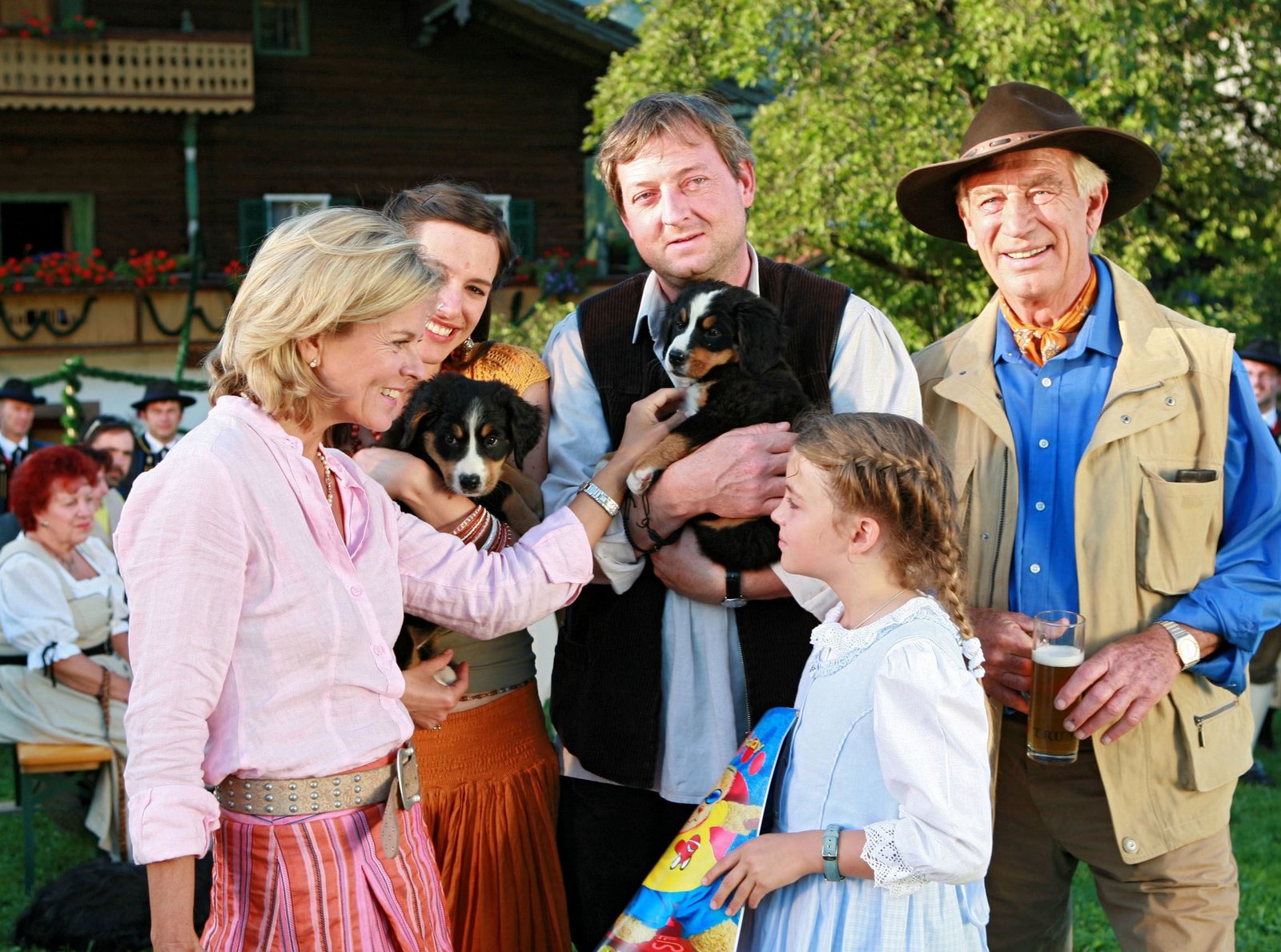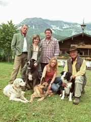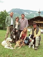 Der Ruf der Berge"Der Ruf der Berge". Im Bild: Tierpsychologe Stefan Suttner (Siegfried Rauch, re.), Tierärztin Dr. Marion Brückner (Marita Marschall, 2.v.re.), Bürgermeister Wegerer (Franz Buchrieser, li.), Nadja Smith (Daniela Preuß) und Xaver Riedel (Maximilian Krückl).Bild: © ORF/DEGETO/Erika Hauri.