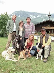 Schatten der VergangenheitStefan Suttners (Siegfried Rauch, 3. von links) Hundeschule ist inzwischen so gefragt, dass der Tierpsychologe sich mit Hilfe seines Assistenten Xaver (Maximilian Krückl) und der Architektin Julia Henschel (Andrea L'Arronge, 2. von links) vergrößern muss. Außerdem muss Suttner sich um seine Enkelin Magdalena (Ronja Forcher) und die Gerüchte der alten Frau Fischhuber (Enzi Fuchs) kümmern.Bild: © "ARD Degeto/Angelika Zinzow" (S2)