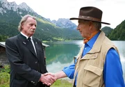 Der Ruf der BergeSuttner (Siegfried Rauch, re.) und sein ehemaliger Freund Wegerer (Franz Buchrieser) reichen sich die Hand.Bild: © ARD Degeto/Angelika Zinzow