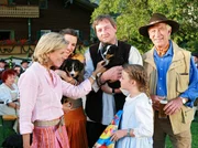 Der Ruf der Bergerbb Fernsehen DER RUF DER BERGE, Deutschland 2005, Regie Bettina Braun, am Sonntag (06.05.12) um 15:35 Uhr. Tierpsychologe Stefan Suttner (Siegfried Rauch, re.), Tierärztin Dr. Marion Brückner (Marita Marschall, 2.v.re.), Bürgermeister Wegerer (Franz Buchrieser, li.), Nadja Smith (Daniela Preuß) und Xaver Riedel (Maximilian Krückl).Bild: © rbb/Degeto/Erika Hauri