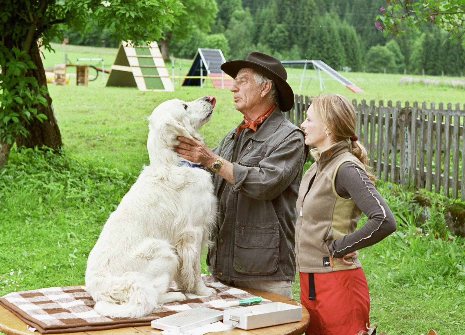 Der Ruf der BergeDie Architektin Julia Henschel (Andrea L'Arronge) vertraut auf die speziellen Fähigkeiten des "Hundeflüsterers" Stefan Suttner (Siegfried Rauch).Bild: © ARD Degeto/Angelika Zinzow