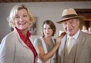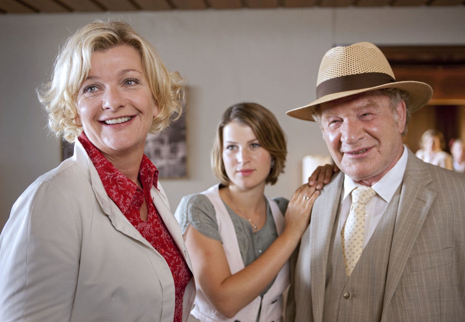 ForellenquintettMerle (Miriam Morgenstern, Mitte) und Veronika (Saskia Vester) sind froh, Opa Albert (Michael Hanemann) wieder im Haus zu haben.Bild: © ARD Degeto/Thomas Kost