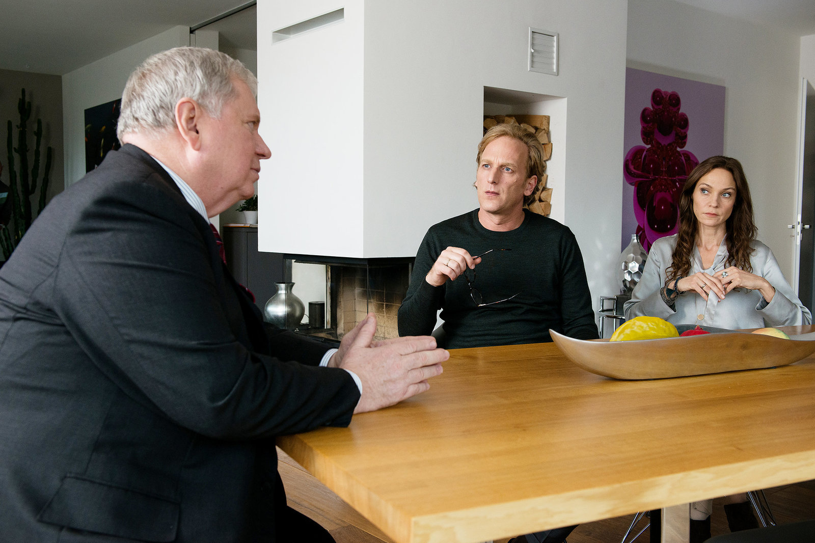 Ein zweites LebenStaatsanwalt Bernd Reuter (Rainer Hunold) stellt auch Marius Weissenberg (Tobias Oertel), dem Sohn der entführten Geschäftsfrau, einige unbequeme Fragen. Dieser ist mit den Sanierungsplänen, die seine Mutter für das Unternehmen hatte, überhaupt nicht zufrieden.Bild: © Sky Krimi