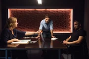 Sauberer TodStaatsanwalt Bernd Reuther (Rainer Hunold, l.), Kerstin Klar (Fiona Coors) und Christian Schubert (Simon Eckert) ermitteln im Mordfall eines Mannes, der für eine Reinigungsfirma arbeitete.Bild: © Sky Krimi