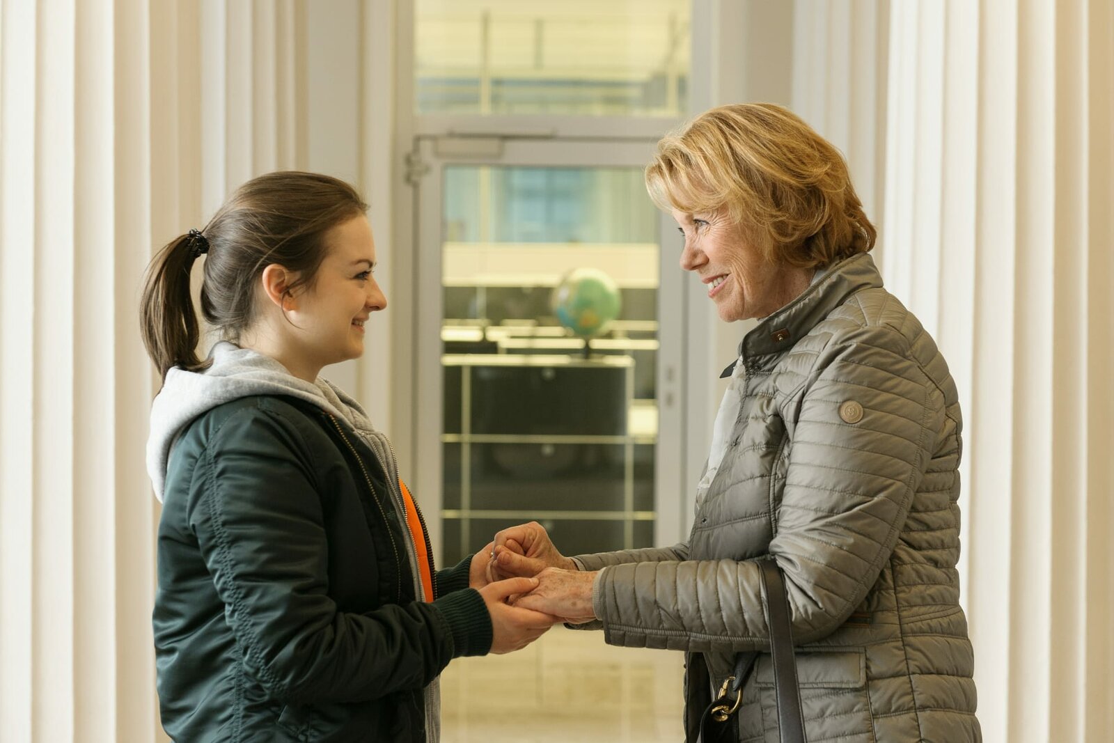 Die EnkelinBarbara Lott (Gaby Dohm, r.) will Paula Blass (Michelle Barthel, l.) einen Ausbildungsplatz besorgen. Doch zu welchem Preis?Bild: © ZDF/Andrea Enderlein