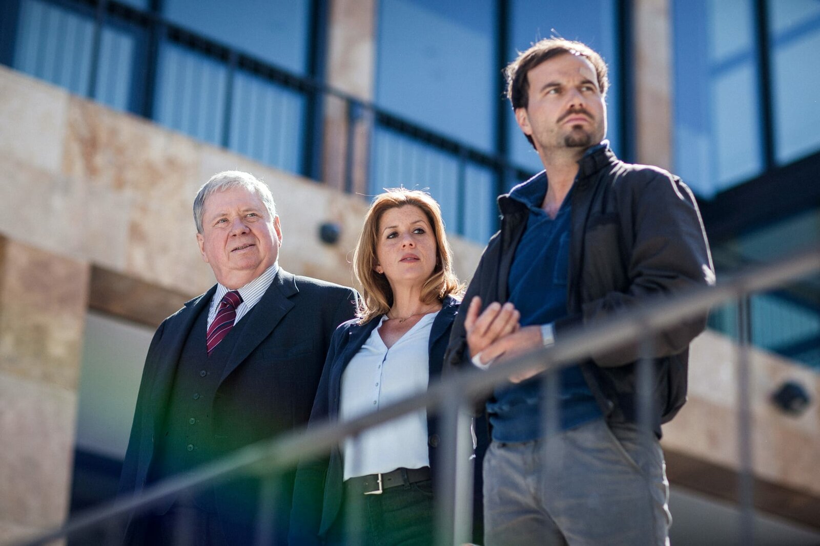 Die Macht der SterneDer Staatsanwalt Die Macht der Sterne Simon Eckert als Christian Schubert (M.), Rainer Hunold als Bernd Reuther (r.) SRF/ZDF/Andrea EnderleinBild: © SRF1