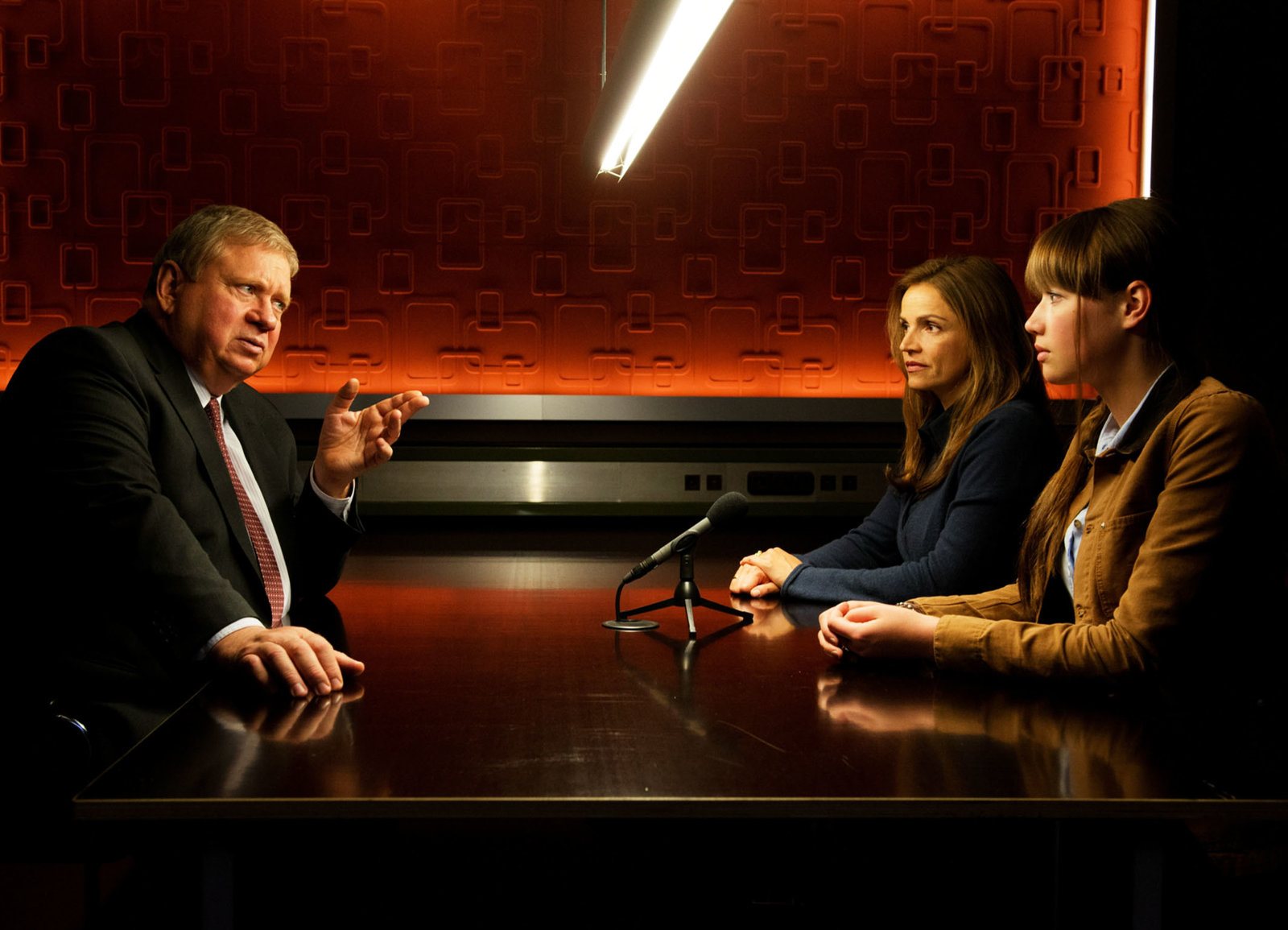 Das LuderDer Staatsanwalt erklärt den Verdächtigen seine Sicht: Rainer Hunold als Bernd Reuther, Rebecca Immanuel als Meike Keller Chiara von Galli als Laura KellerBild: © SRF/ZDF/Andrea Enderlein