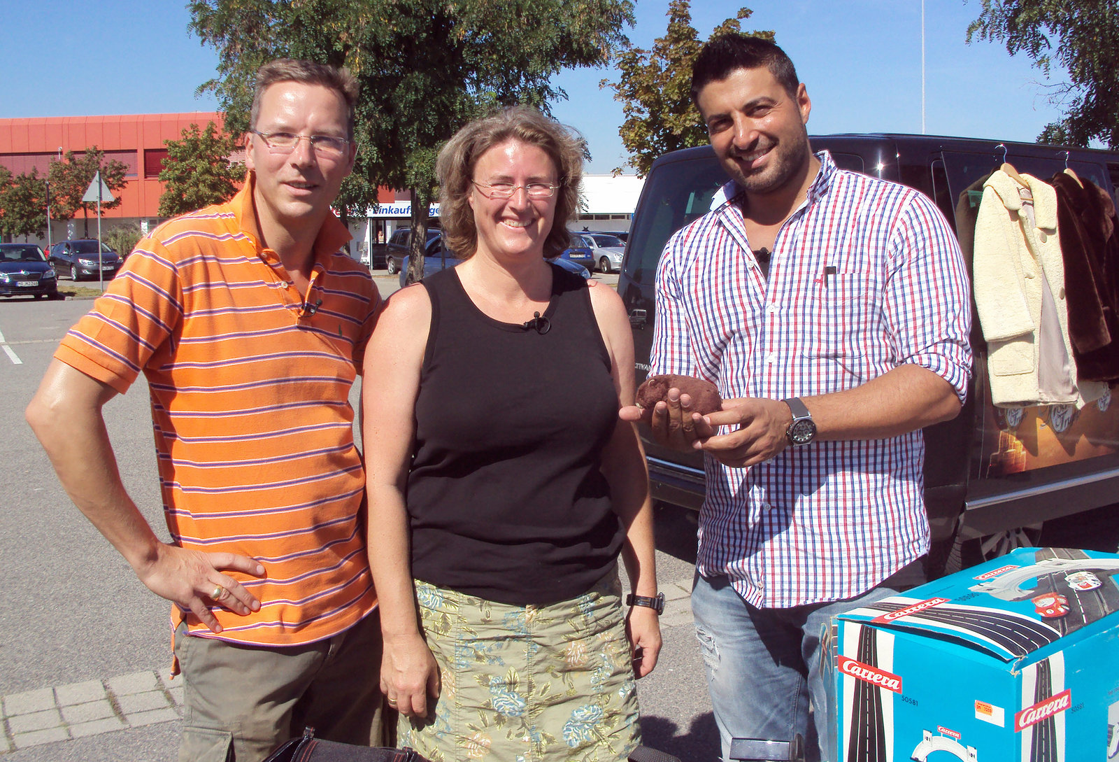 Gut sortierter TrödelTrödelexperte Sükrü Pehlivan (re.) mit David und Angela auf dem FlohmarktBild: © RTL II