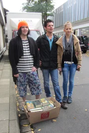 Folge 412Von links: Danny, Marcel und Jasmin wollen Bücher verkaufen.Bild: © RTL II