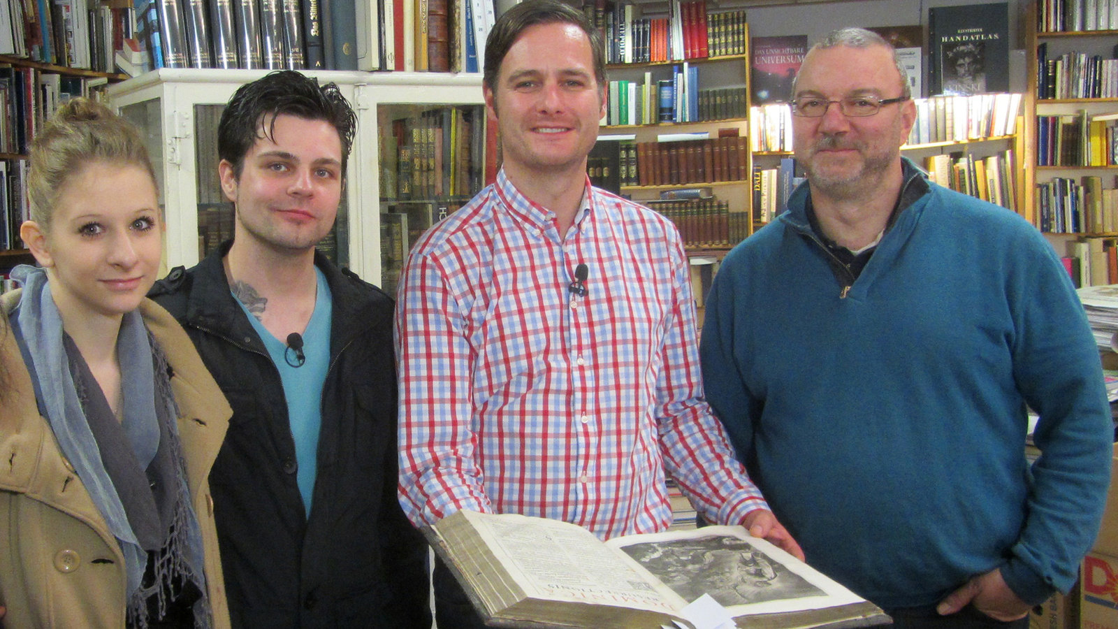Folge 412Von links: Jasmin, Marcel, Trödel-Experte Andreas Bierschock und Antiquitätenhändler Klaus-Peter. Ist das antike Buch ein echter Schatz?Bild: © RTL II