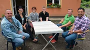 Trödeltrupp Spezial 27Lagebesprechung, von links: Heinz, die Trödelexperten Otto Schulte, Sükrü Pehlivan und Mauro Corradino, Michaela und Klaus.Bild: © RTL II