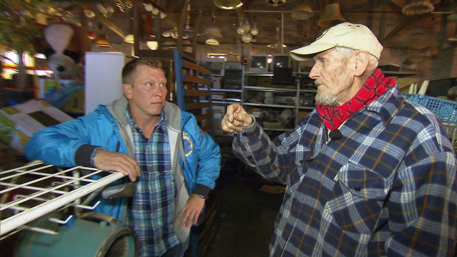 Entrümpeln und hortenTrödelprofi Otto Schulte (re.) ist gekommen, um Heino und Jutta bei der Entrümpelung der Halle unter die Arme zu greifenBild: © RTL II