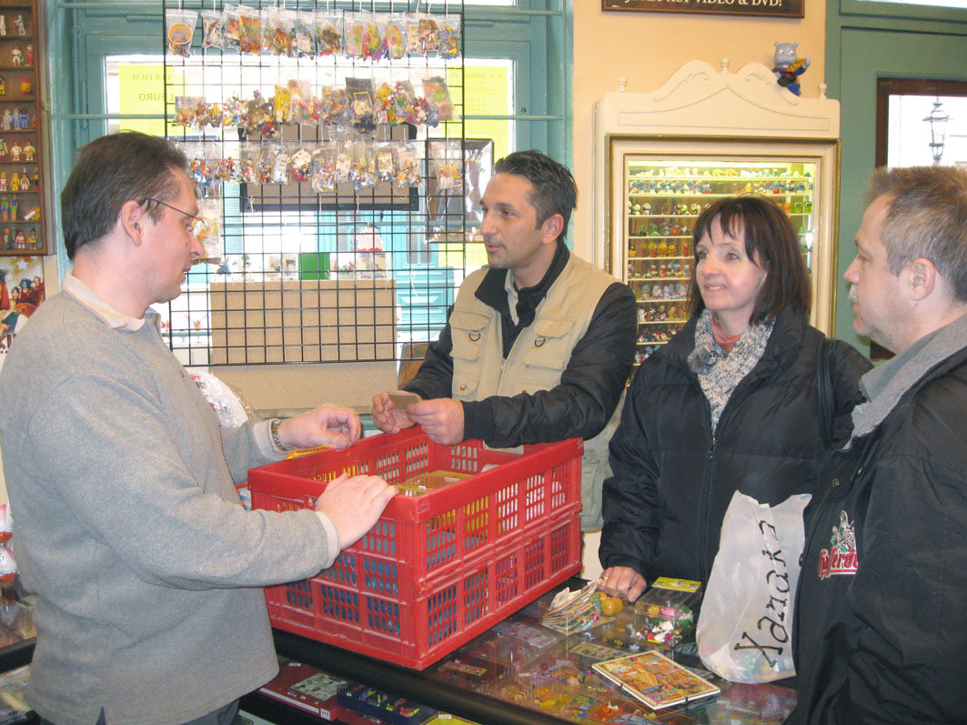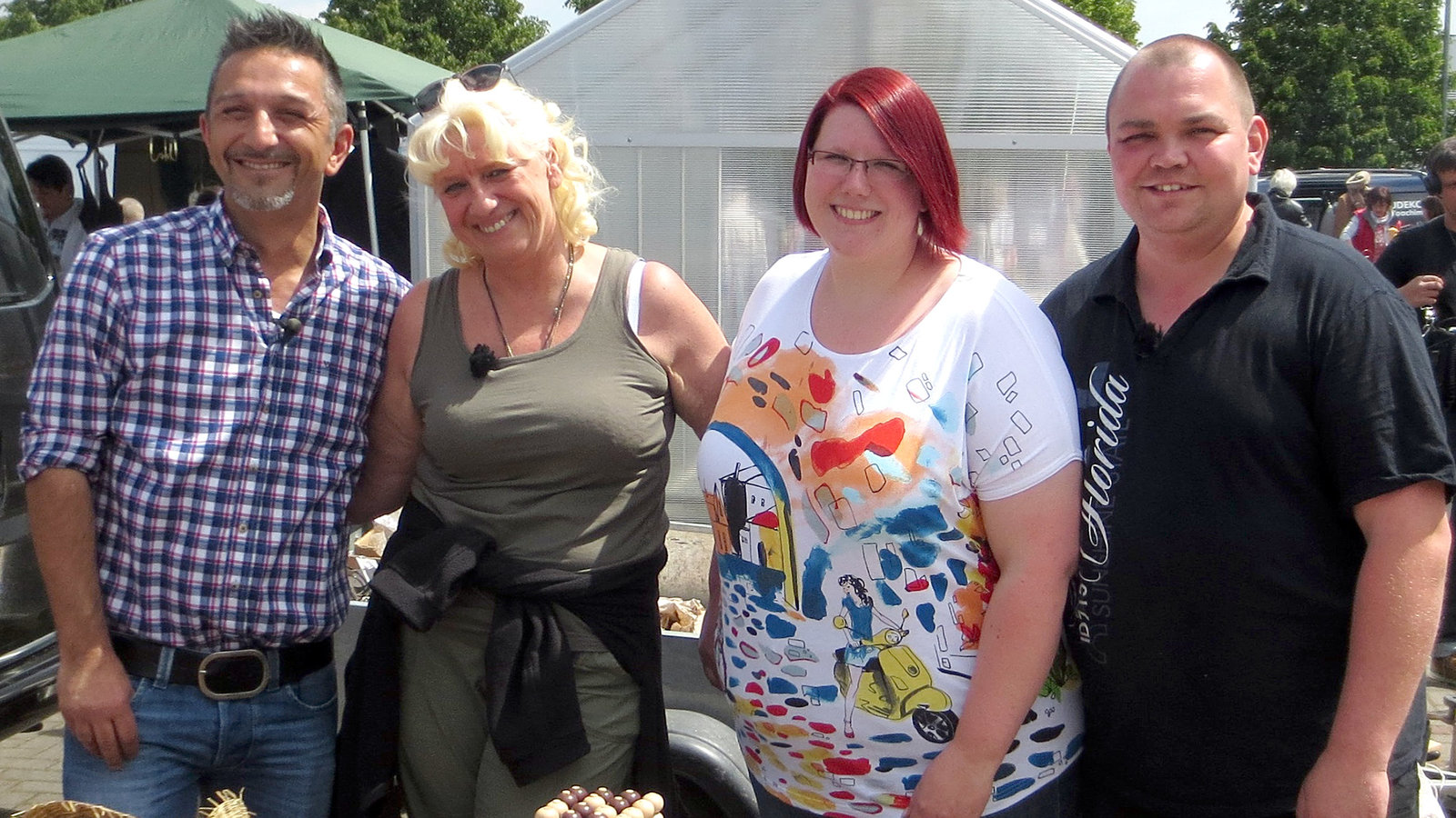 Folge 572Trödelprofi Mauro Corradino (li.) mit Petra, Constanze und Marcel auf dem FlohmarktBild: © RTL II