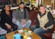 Otto, Sükrü und Mauro bei RolandRoland (li.), Trödelprofi Mauro Corradino und Rolands Tochter ClaudiaBild: © RTL Zwei
