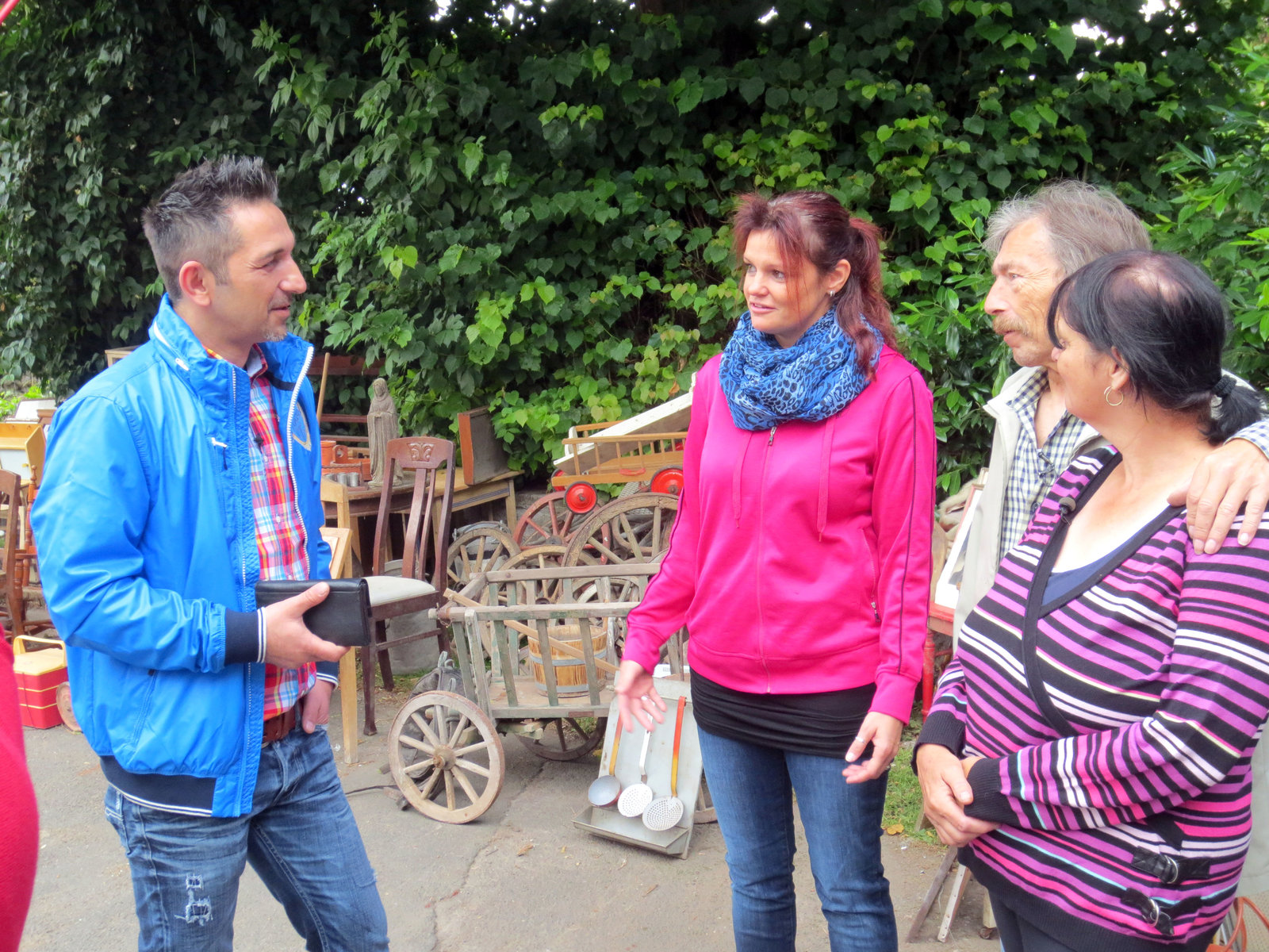 Folge 348Lagebesprechung Scheunenflohmarkt_v.li. Mauro Corradino (Moderator), Yvonne Henkler, Wolfgang Klein, Inge KleinBild: © RTL II
