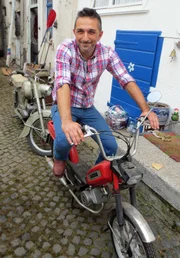 Trödeltrupp Spezial 38Trödelprofi Otto Schulte mit Ramona und einer ZündappBild: © RTL II