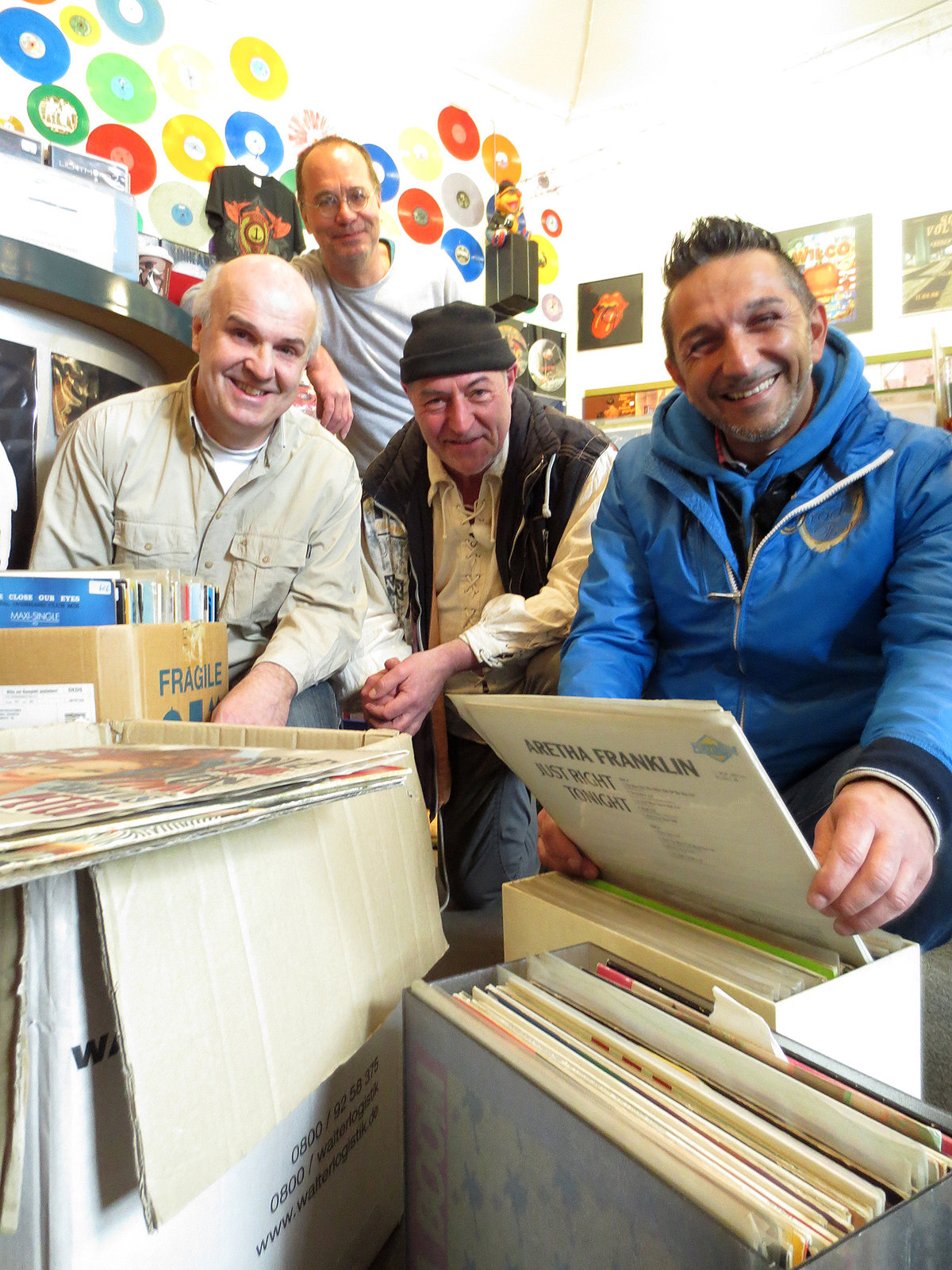 Folge 420Von rechts: Trödelexperte Mauro Corradino und Volker verkaufen Schallplatten an Gerd Noeth und Thomas Lefeber.Bild: © RTL II