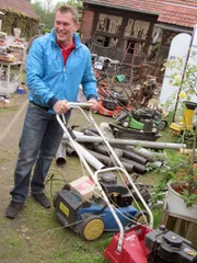 Als Schrotthändler sitzt Uwe an der QuelleTrödelexperte Otto Schulte findet allerhand Schrott ... auch ausgediente RasenmäherBild: © RTL II