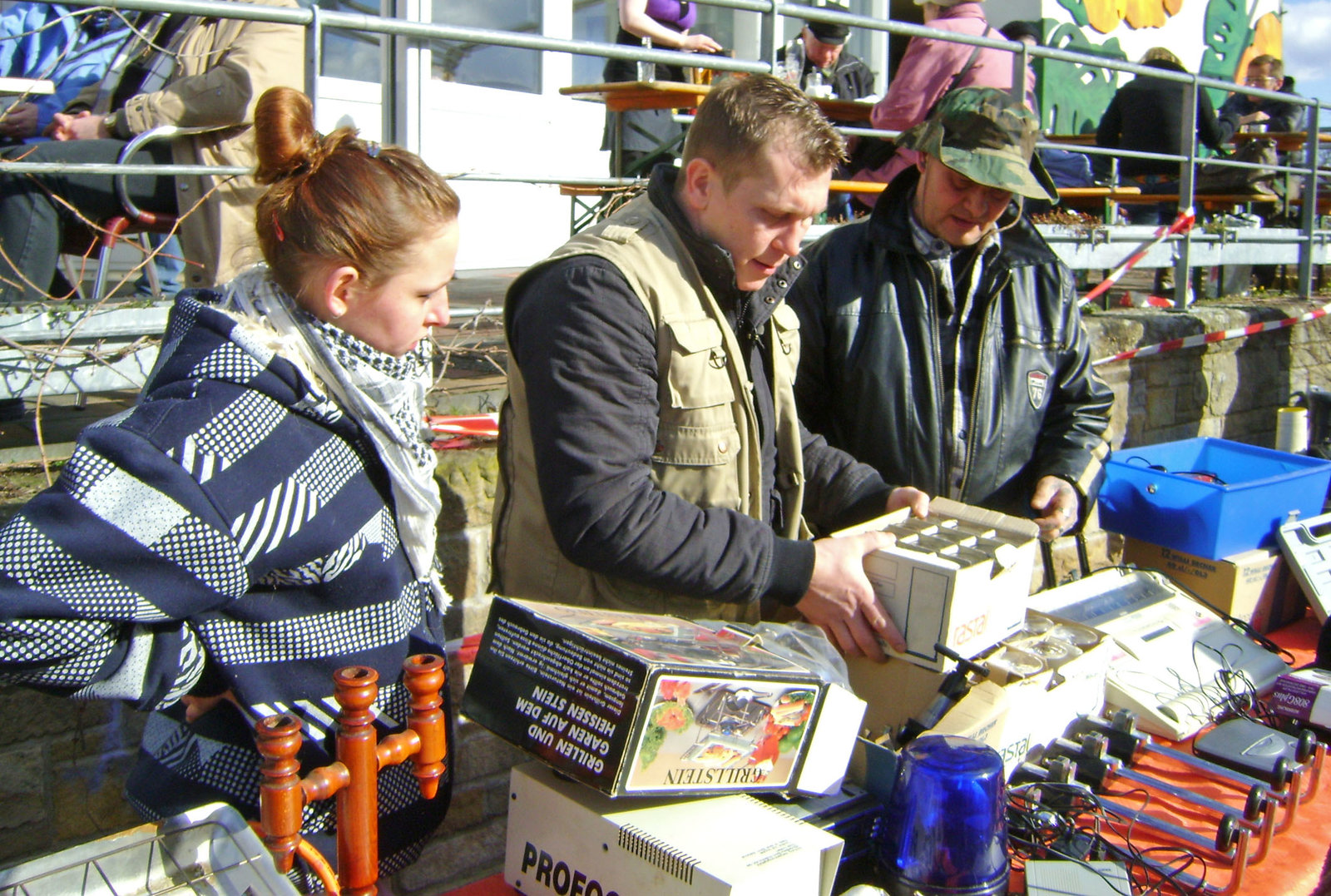 Zwangsräumung durch SchuldenbergTrödelprofi Otto Schulte (Mitte) mit Andreas (re.) und dessen Tochter Angelique (li.) auf dem FlohmarktBild: © RTL II